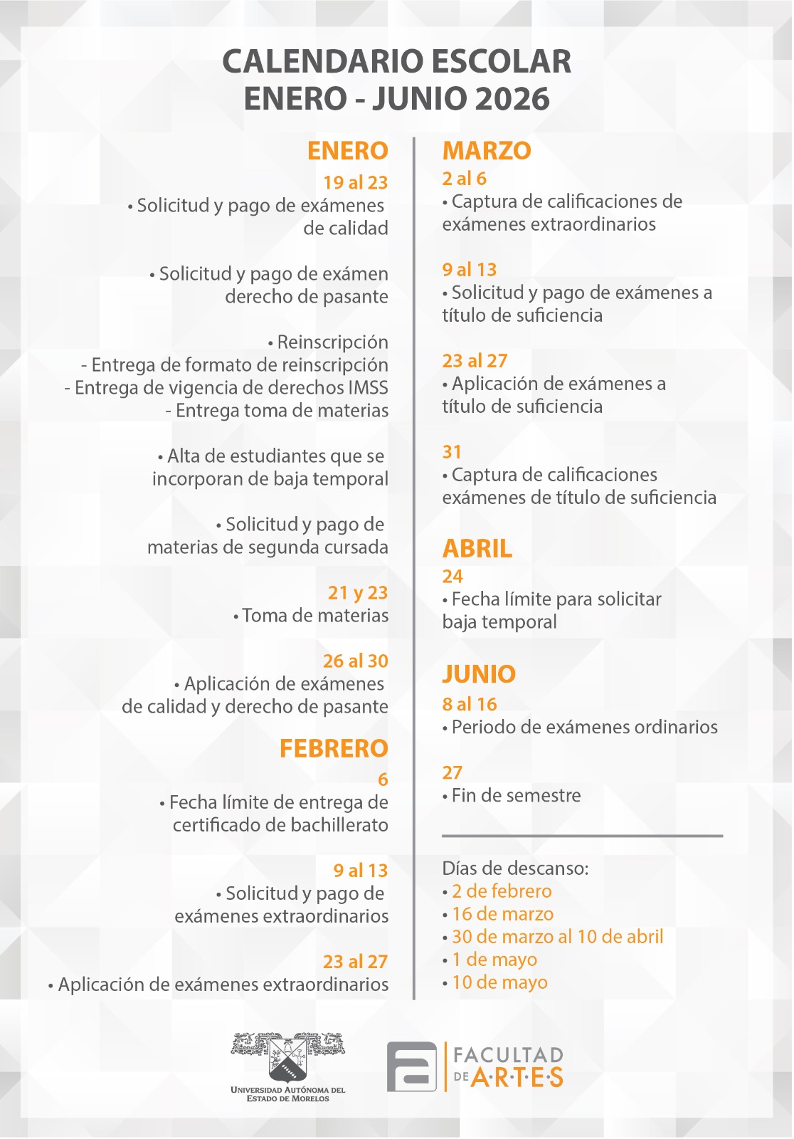 Calendario Escolar | Enero – Junio 2026